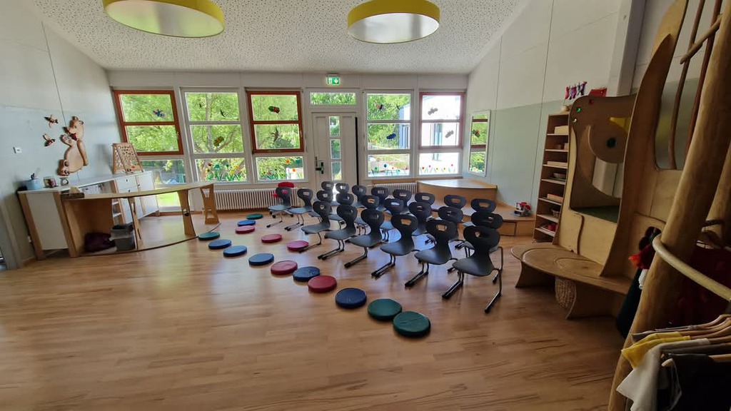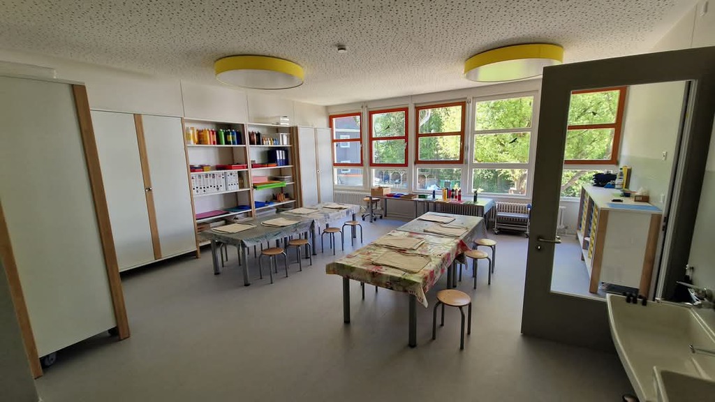 - ein Hort-Freizeitraum, ein Werkraum,ein Hausaufgabenzimmer sowie eine separate Hortgarderobe und altersangemessene, geschlechtergetrennte Toiletten.