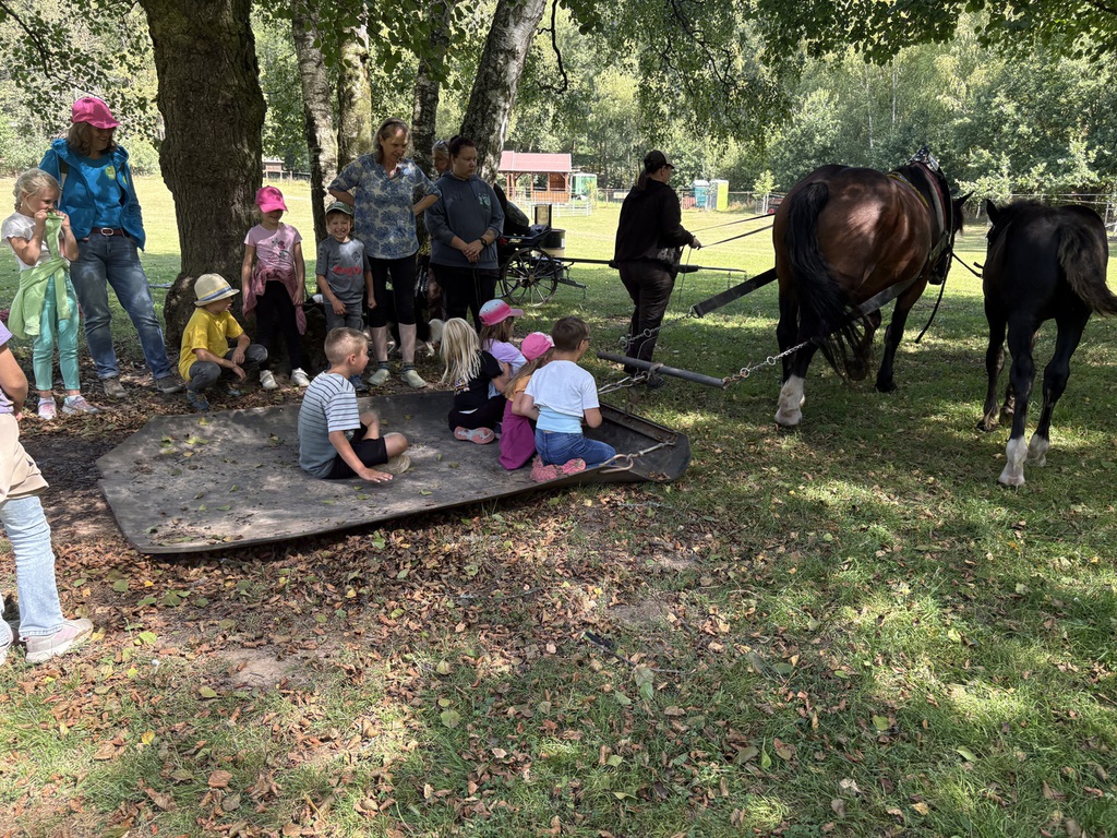 Unsere Kinder konnten einen tollen Tag mit vielen Akionen erleben.Selbst "Schlittenfahren" war bei 30 Grad möglich, da die Kinder auf Plastikplanen sitzend ,von Pferden über die weitläufigen Wiesen gezogen wurden.
